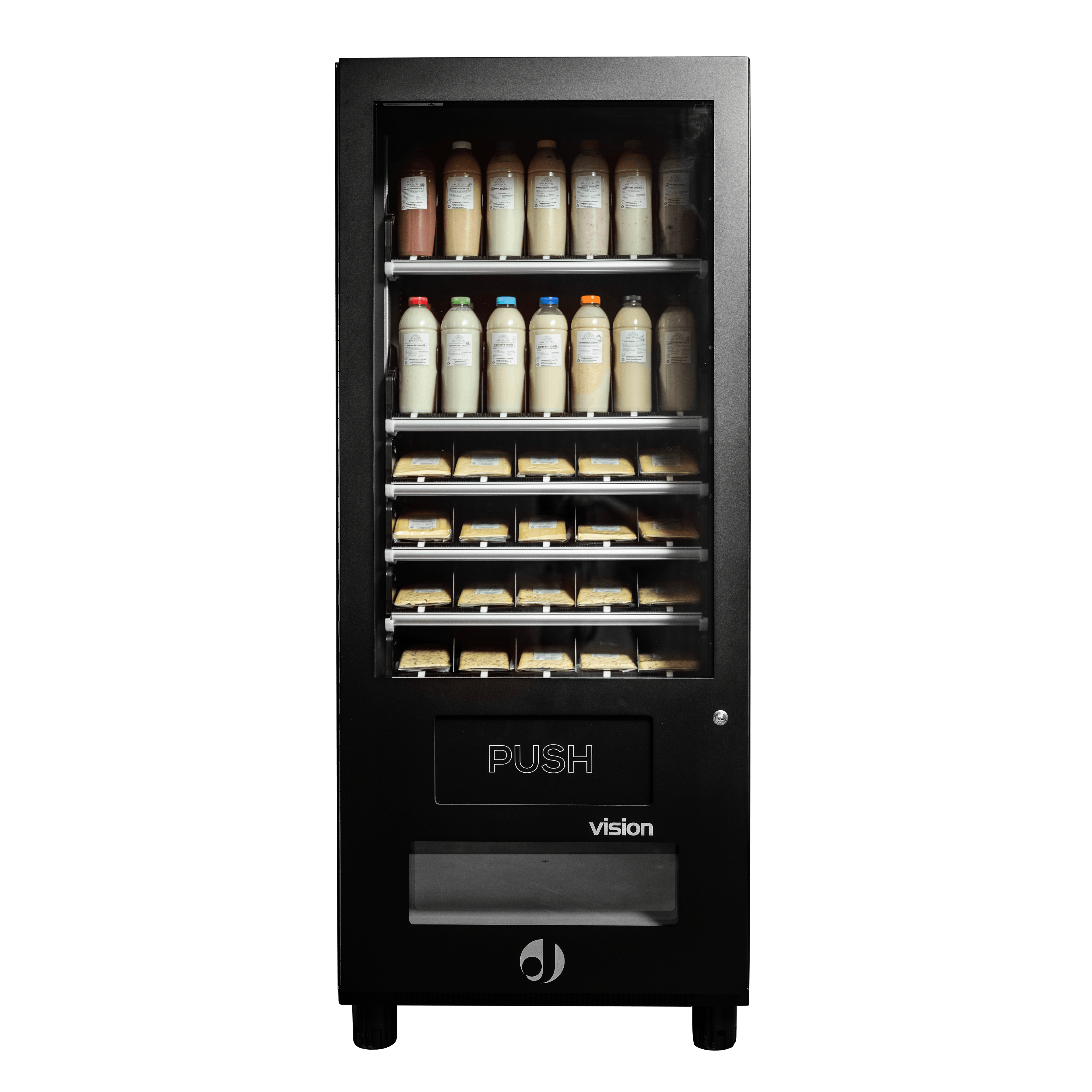 De ideale automaat voor kwetsbare producten zoals zacht fruit, eieren, kaas of flessen met zuivel en sap; de transportlift brengt ze geleidelijk en veilig naar de uitgifteklep.