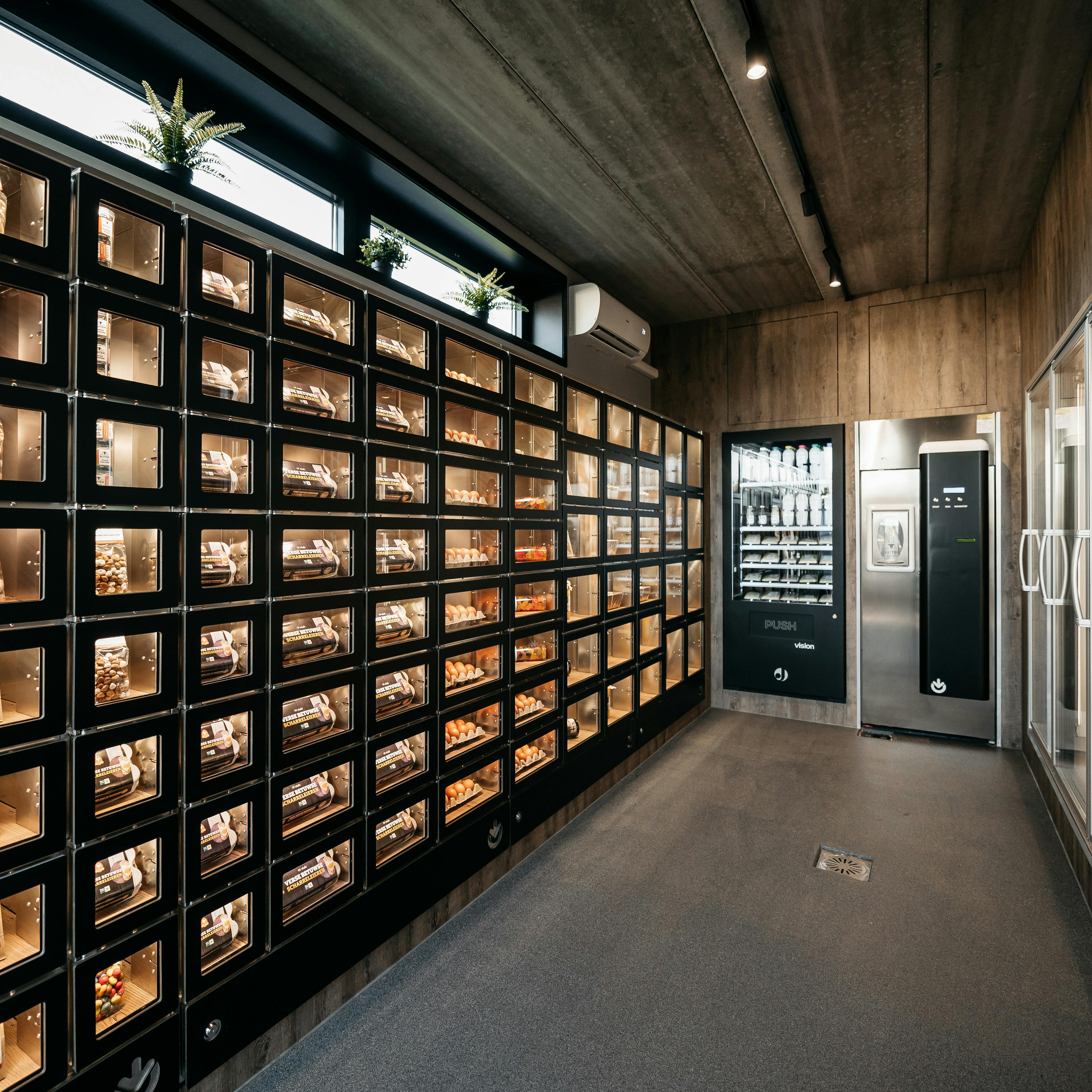 Klanten klikken hun producten bij elkaar op het centrale display, rekenen af met hun pinpas, smartphone of smartwatch en kunnen daarna in één keer alle producten uitnemen. Snel en makkelijk!