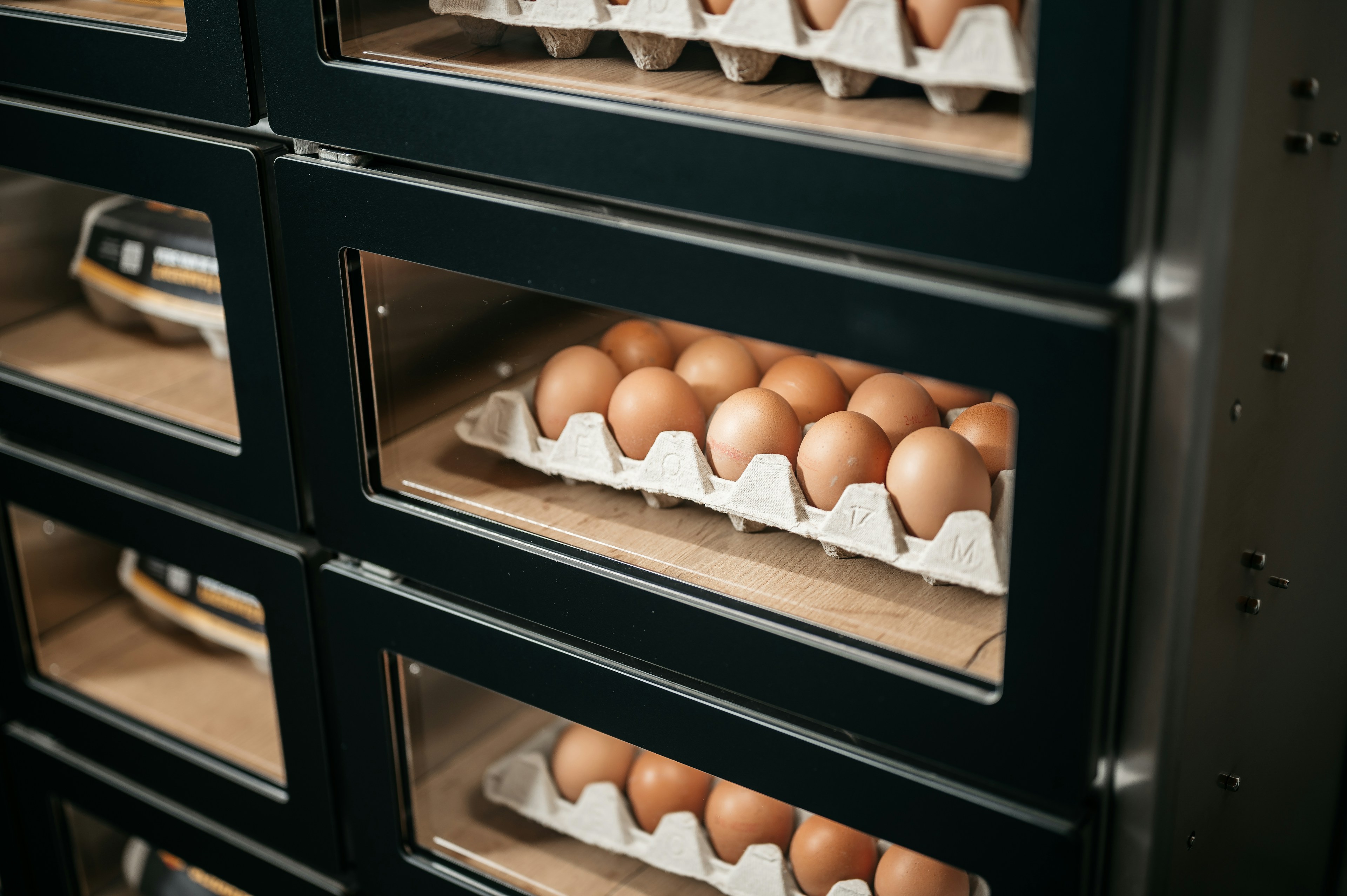 Verkoop jouw verse eieren direct aan consumenten die jouw boerderij passeren. Ontdek het gemak van de nieuwste generatie eierautomaten. Ze zijn geschikt voor doosjes en trays en hebben een hoge capaciteit, zodat je niet steeds bij hoeft te vullen. En wil je ook kippenvlees of andere boerderijproducten op eigen erf verkopen? Stel met onze modulaire automaten eenvoudig een complete boerderijwinkel samen.